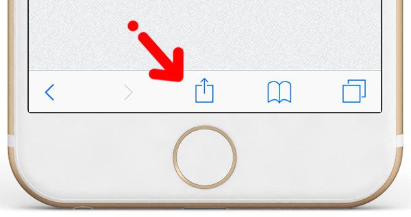 3- سپس وارد محیط وباپلیکیشن میشوید و باید گزینه اشتراک گذاری را بزنید. در پایین مرورگر مربعی به همراه یک فلش بالا قرار دارد، روی آن کلیک کنید.