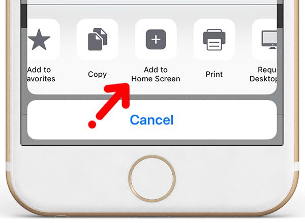 4- گزینه Add to Home Screen را انتخاب کنید و پس از آن Add را بزنید